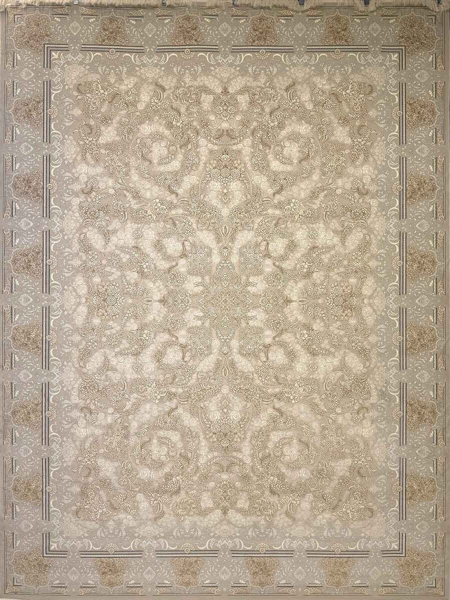 - رنگ فرش کرم روشن با حاشیه نقرهای و طلایی