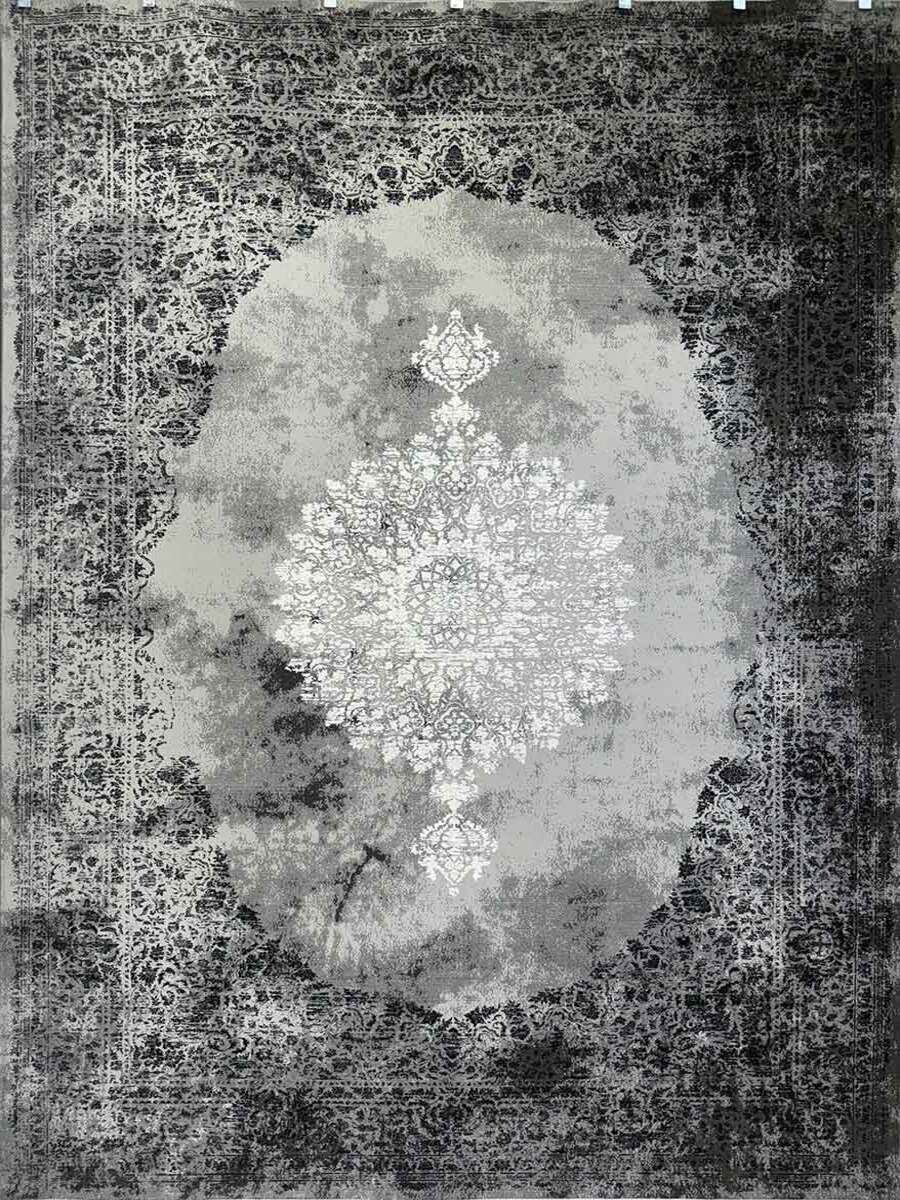فرش ماشینی ترمهای کد 121131 با طراحی کلاسیک و رنگبندی نقرهای ملایم، نمایی از آرامش و ظرافت را در هر فضا بهوجود میآورد.